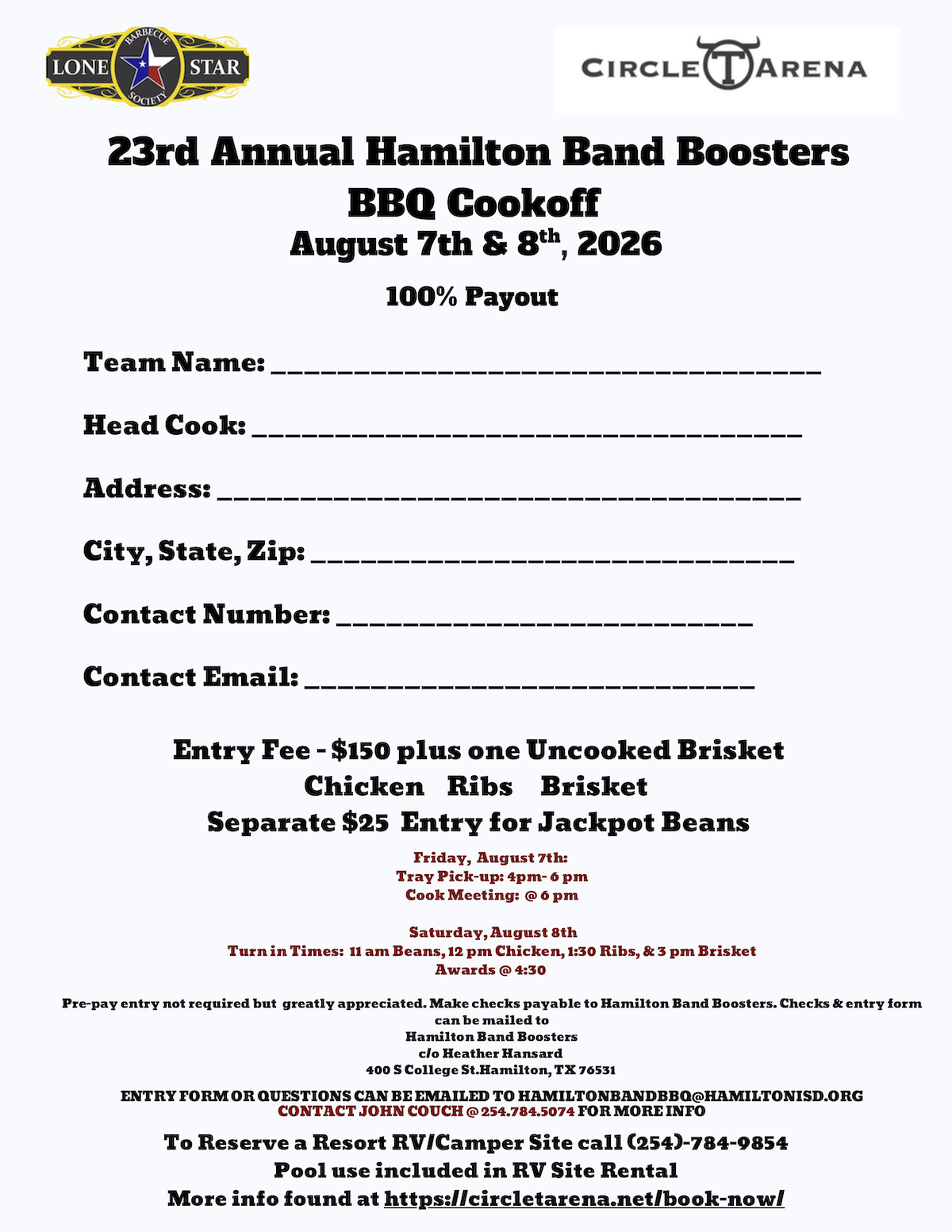 The 23rd Annual Hamilton Band Boosters BBQ Cookoff is coming back to Circle T Arena August 7th & 8th… and this isn’t just another cookoff.